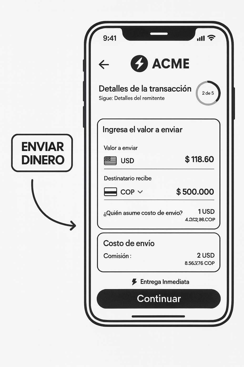 El SDK de Milio permite iniciar flujos de operaciones cross-border (envíos internacionales) directamente desde la app del cliente, sin exponer información sensible y garantizando la seguridad de extremo a extremo.