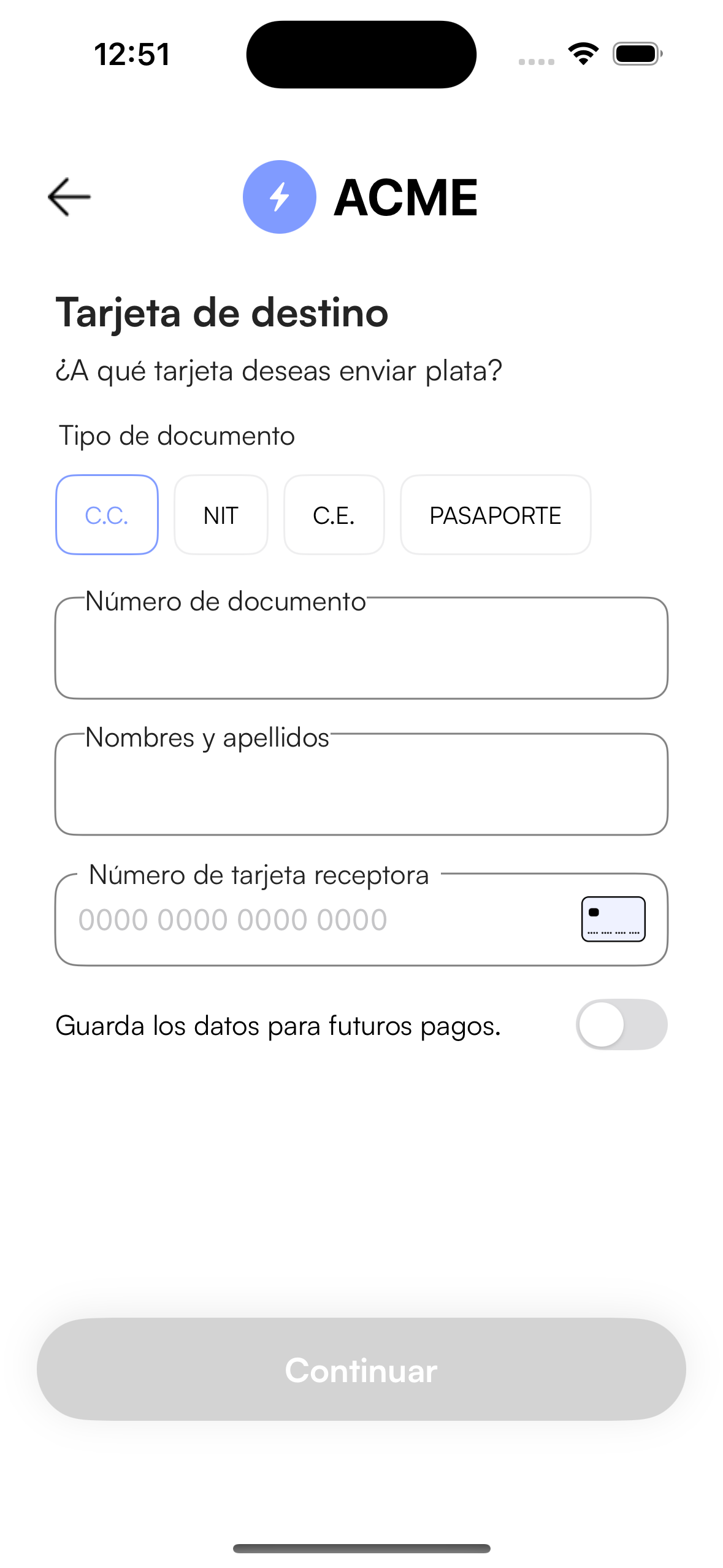El usuario ingresa manualmente los datos de la transacción (monto, cuenta destino, etc.).